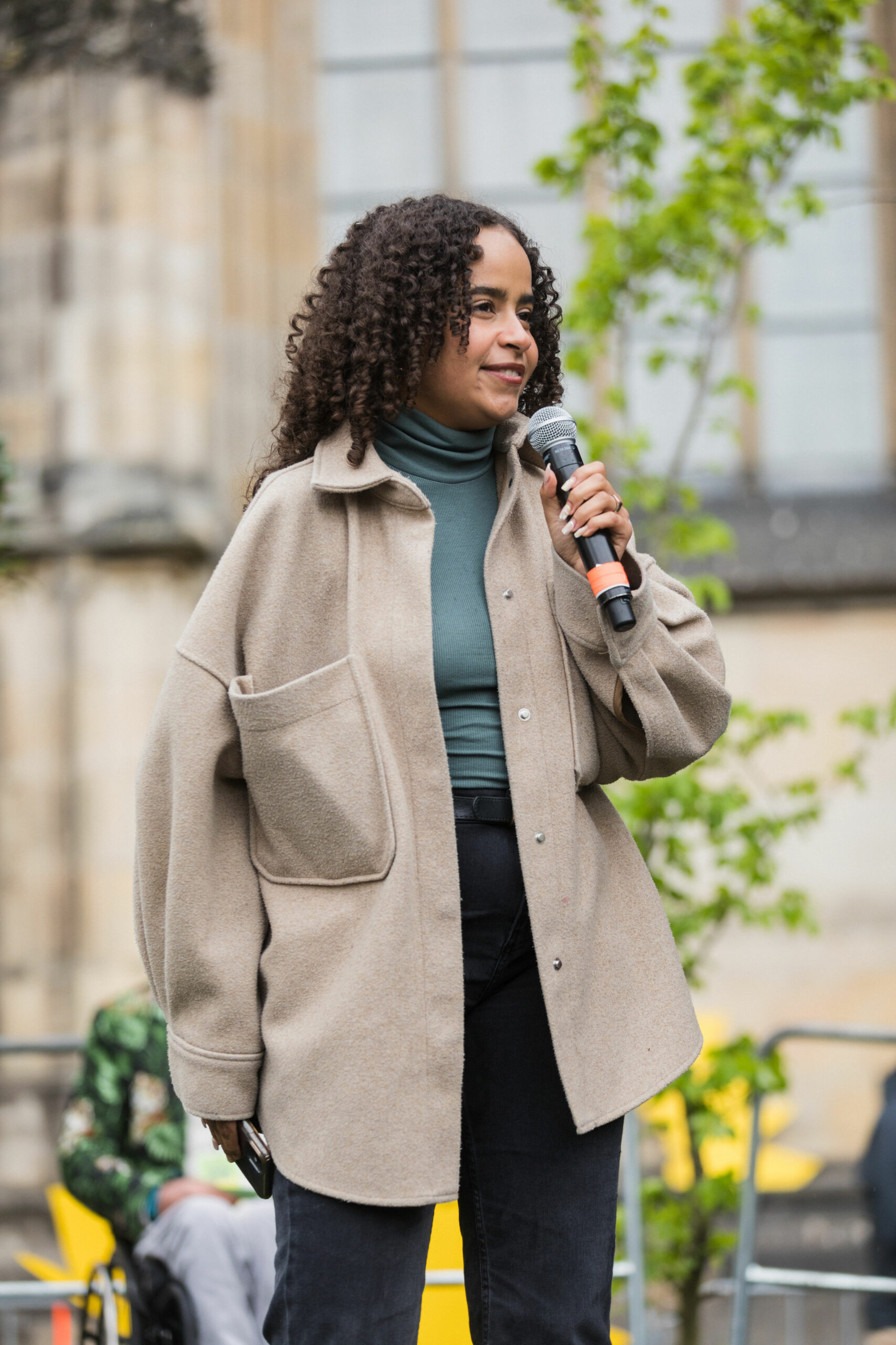 Sarah-Lee Heinrich eröffnete die Townhall und sprach über die Chancen der Landtagswahl für junge Leute in Nordrhein-Westfalen. Von einer nachhaltigen und sozial gerechten Politik in NRW können junge Menschen besonders profitieren: mit guter Bildung und ausgebautem Nahverkehr verbessert sich unser aller Zukunft.
