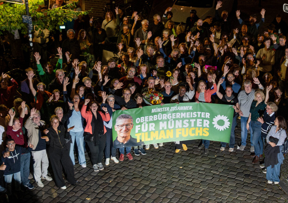 Am Sonntag konnte Tilman Fuchs, Kandidat der GRÜNEN für das Amt des Oberbürgermeisters, die Stichwahl gegen den Mitbewerber der CDU, Georg Lunemann für sich entscheiden. Mit einer klaren Mehrheit setzte Fuchs sich durch, sodass schon vor dem Ende der Auszählungen der Sieg abzusehen war. Im Rathaus nahm er eine Menge Jubel und Glückwünsche entgegen, auch vom amtierenden OB, Markus Lewe und dem unterlegenen Lunemann.