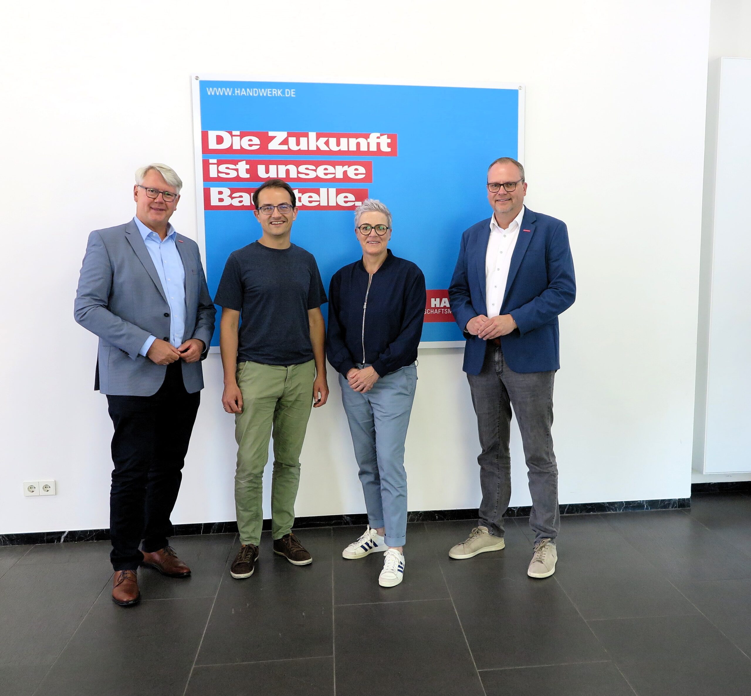 Sylvia Rietenberg, MbB und Dr. Robin Korte, MdL (M.) suchten das Gespräch übers Handwerk. In der HWK begrüßten sie Hauptgeschäftsführer Thomas Banasiewicz (l.) und Geschäftsführer Markus Hartmann (r.)