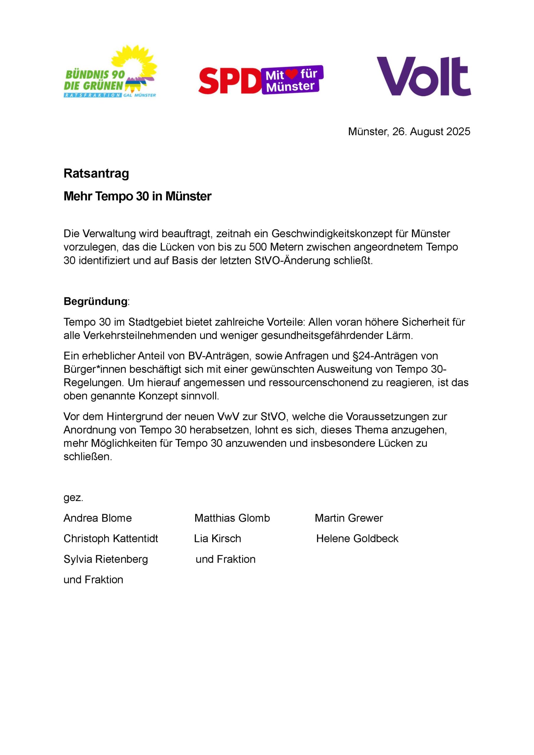 Tempo 30 im Stadtgebiet ausweiten: Mehr Verkehrssicherheit, weniger Lärm und Emissionen
